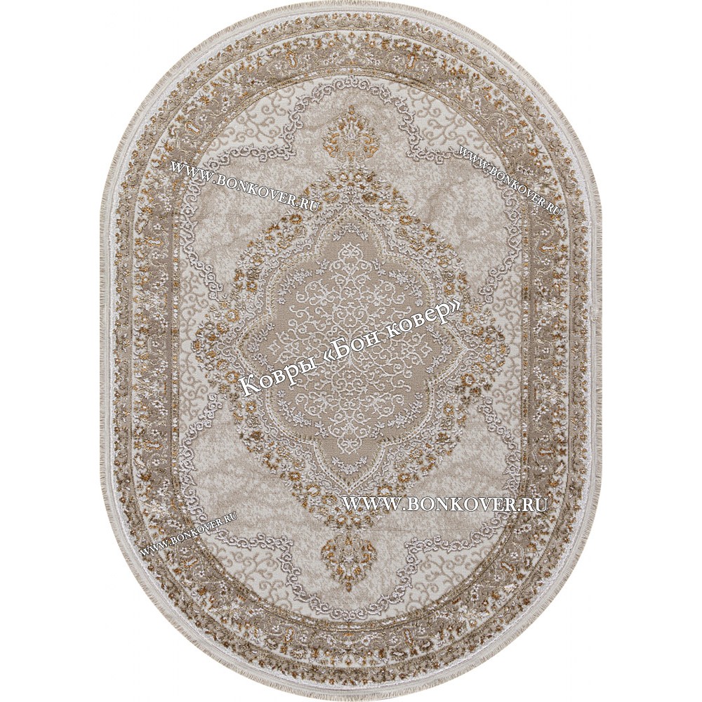 Ковер Для Гостиной Арт 29881 Турция Бежевый с Белым Овал станет шикарным преображением жилого помещения, подчеркивая высокий статус владельца.