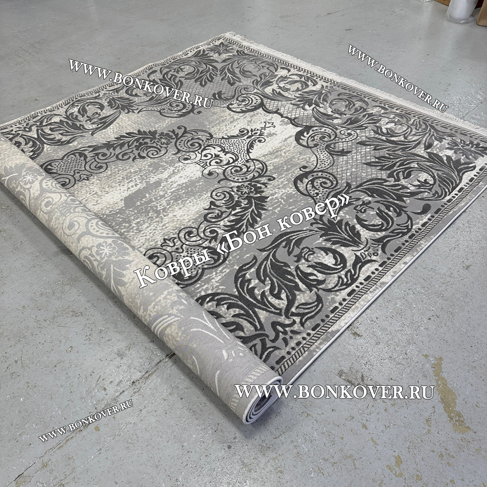 Красивый Ковер Для Гостиной Медальон Дизайн 30544 Серый наполняет интерьер комнаты теплом и уютом, гармонично сочетает в себе изящество и стиль. Он соткан из современных материалов, прочный и долговечный.