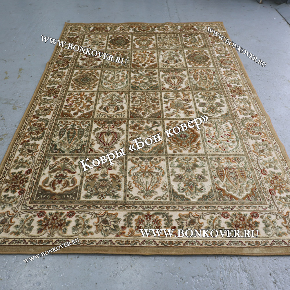 03.05.2020 Читать полный отзывДолго выбирала, остановилась на данной модели. Ковер понравился, очень красивый праздничный, нежной расцветки сливочно кремовой. Ковёр средний плотности, к этому я была готова, т. к. вес ковра 9 кг, ковры аналогичных размеров более плотной набивки весят 12 кг. Слегка хамелионит, в дневное время цвет..